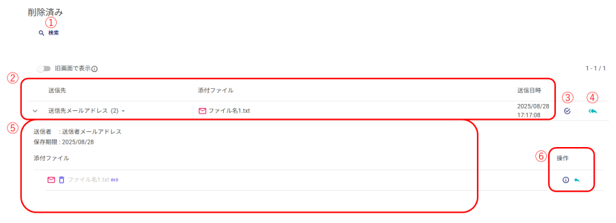 削除済み内のファイルは、1~2日で本システム上から完全削除されます。