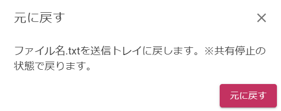 元に戻すをクリックすると、削除したファイルを個別に復元することができます。