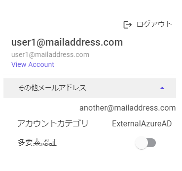 クリックするとログイン情報が表示され、以下のことが行えます。