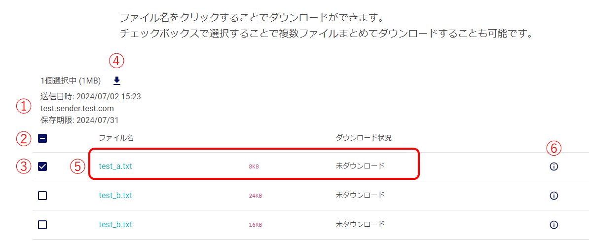 ファイル情報のファイル名をクリックすることで、個別にダウンロードすることもできます。