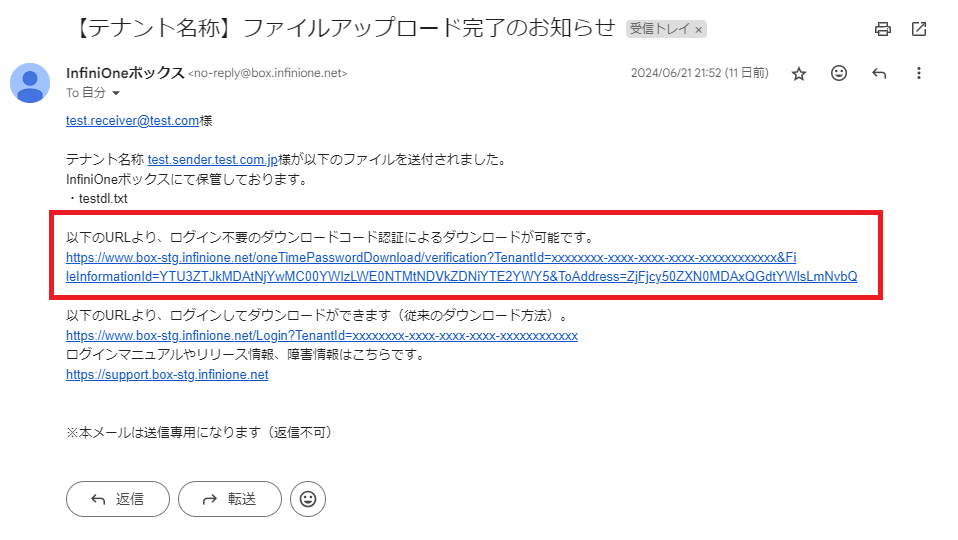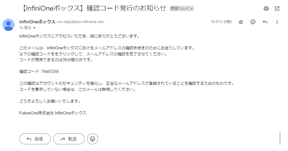 確認コード発行のお知らせから、確認コードを確認することができます。