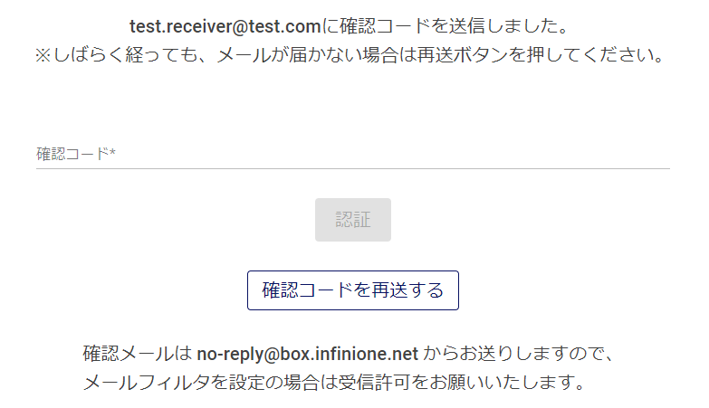 確認コードの再送:
