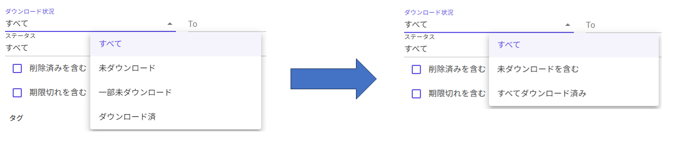 改善要望に基づき、検索画面のダウンロード状況の選択肢を変更しました。